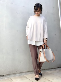 Kay-teeeのTシャツ/カットソー「ボリューム袖ボーダーカットソー」を使ったコーディネート