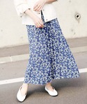 KBFのブラウスは生地の質感がめちゃツボ シアーでハリのある生地が繊細で大人っぽい🥰 Chillfarのプリーツスカートは青の小花柄がレトロで可愛い😍
