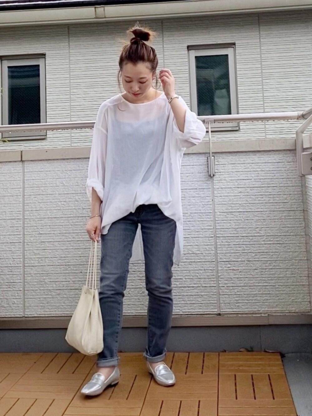 Kay-teeeのシャツ/ブラウス「BACKオープンコットンボイルシアーブラウス」を使ったコーディネート