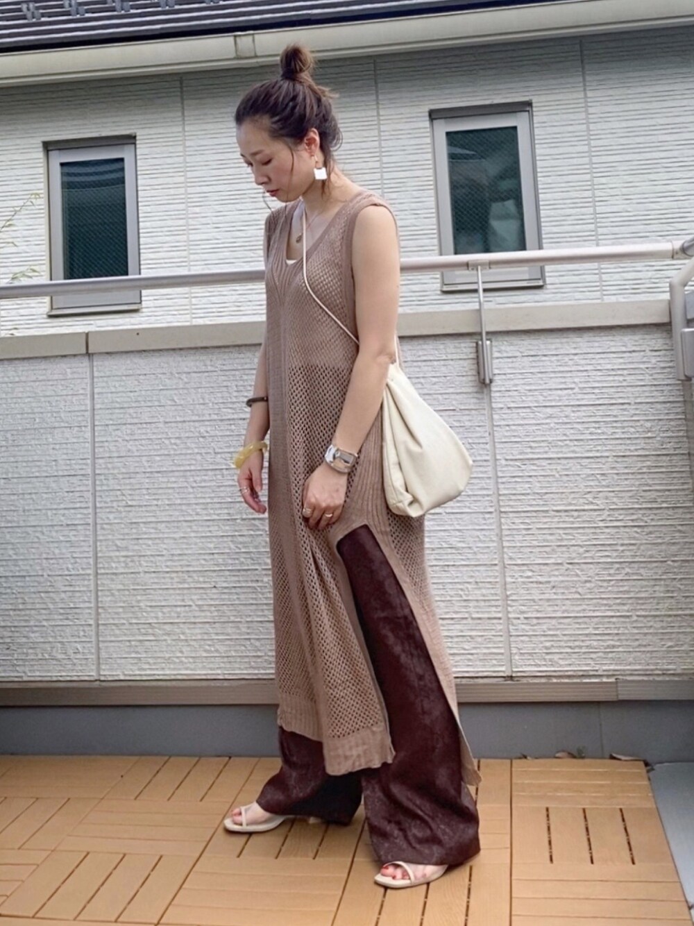 Kay-teeeのベスト「フィッシュネットロングニットベスト」を使ったコーディネート