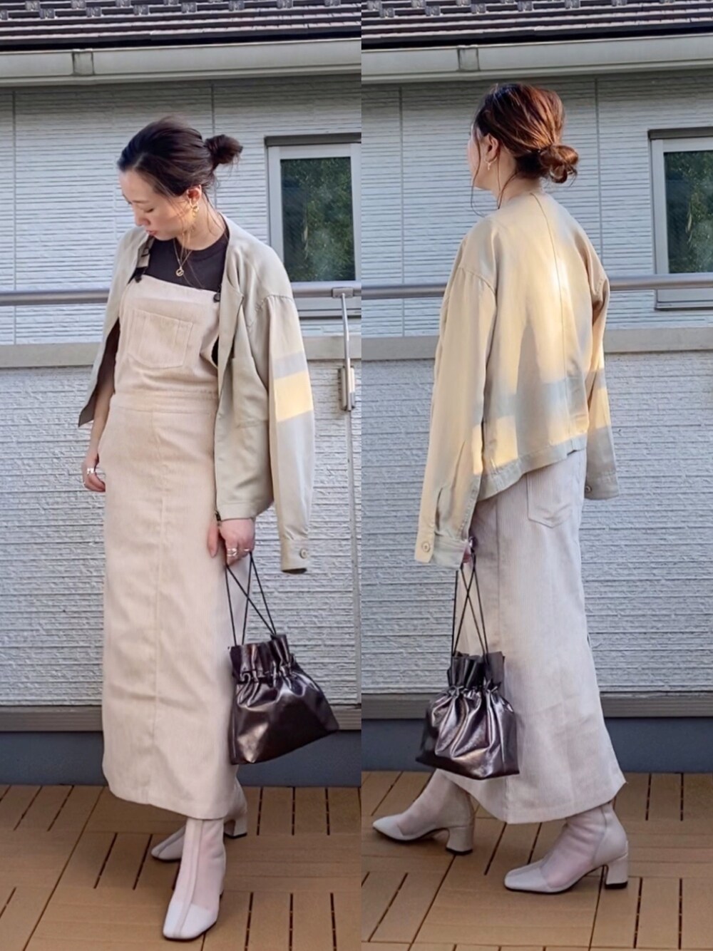 URBAN RESEARCH DOORSのコンパクトジップブルゾン✨ この時期重宝するライトアウター😊 とろみ素材がいい感じ👍 Riberryのコーデュロイジャンスカ✨ コーデュロイに温もりある質感が今の気分🥰 タイトめなシルエットで大人っぽく着れます◎ 本日Riberryの1000円クーポン出てます💁♀️✨