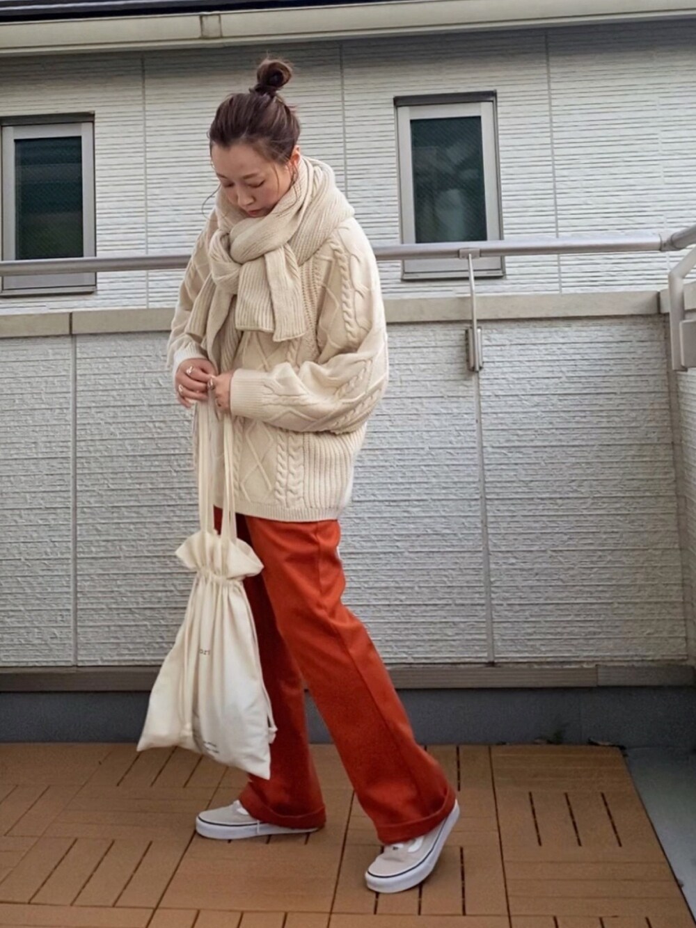 VACANCYのセミフレア起毛ツイルスラックスパンツ✨ しっかりした起毛素材で形がキレイなパンツ めちゃぬくぬくです😍 これなら真冬でも頼れる👍 鮮やかなオレンジが今年しくて◎