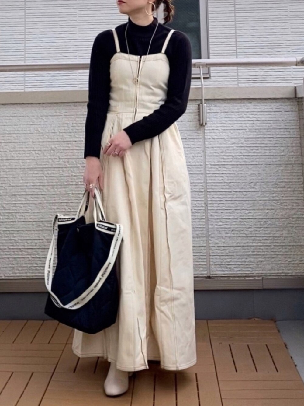 やっぱりこの時期春物が気になる🙌 Sonny labelのジャンスカをモノトーン合わせで😊✨