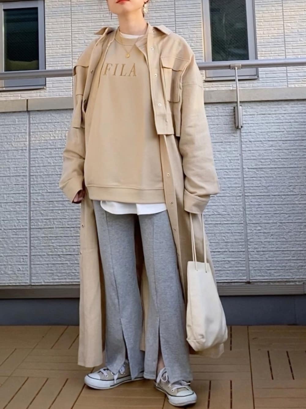 Chillfar 別注 FILAロゴ刺繍スウェット✨ スウェットのカラーと同色の刺繍が上品で大人っぽい😊 ゆったりオーバーサイズが今年っぽい👍