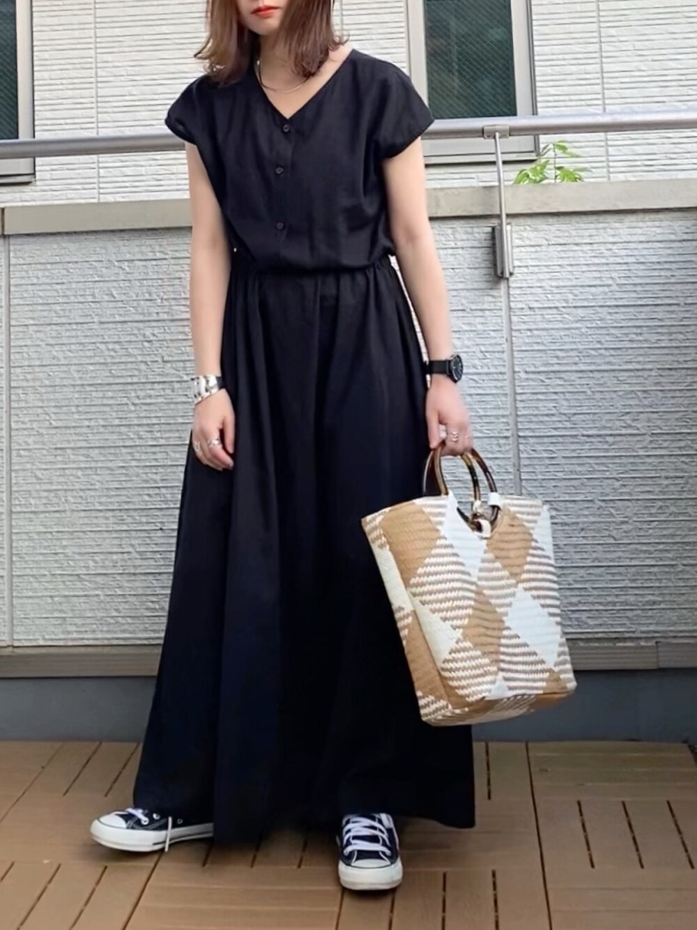 Kay-teeeのワンピース「<2WAY> UR TECH+抗菌リネン混フレンチギャザーワンピース」を使ったコーディネート