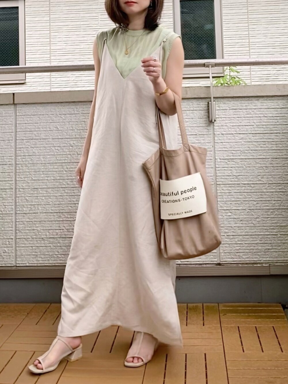 Kay-teeeのワンピース「ノースリーブSETキャミワンピース」を使ったコーディネート