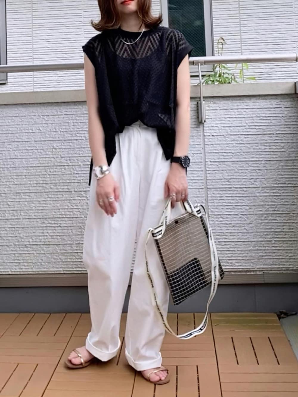 Kay-teeeのベスト「総柄シースルーベスト」を使ったコーディネート