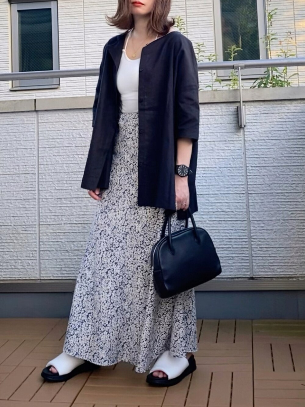 花柄スカート黒でしめて大人っぽく😊