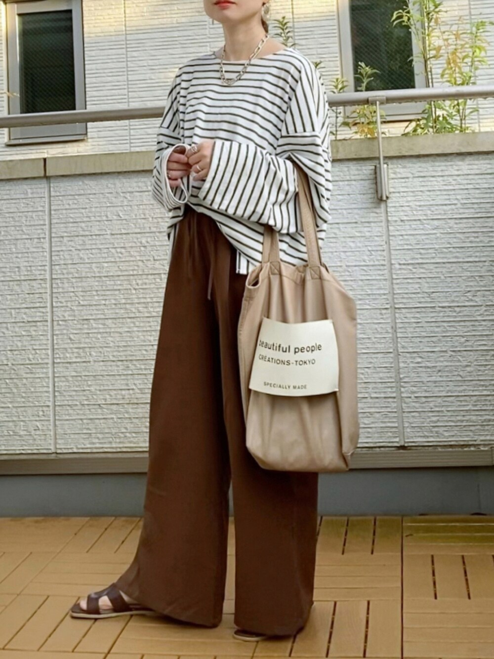 Kay-teeeのTシャツ/カットソー「ルーズボーダーTシャツ」を使ったコーディネート