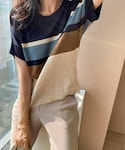 Kay-teeeのニット/セーター「[monicaroom] ドルマン配色半袖ニット」を使ったコーディネート