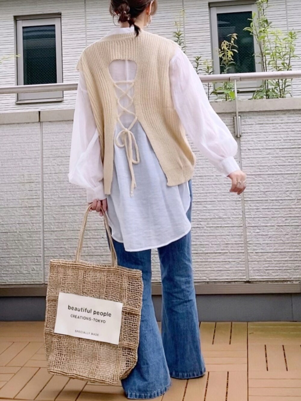 Kay-teeeのベスト「【WEB限定】バックレースアップニットベスト」を使ったコーディネート