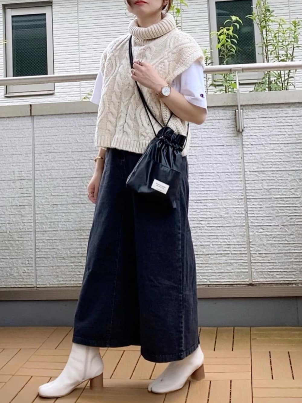 Kay-teeeのベスト「ツイストハイネックニットベスト」を使ったコーディネート