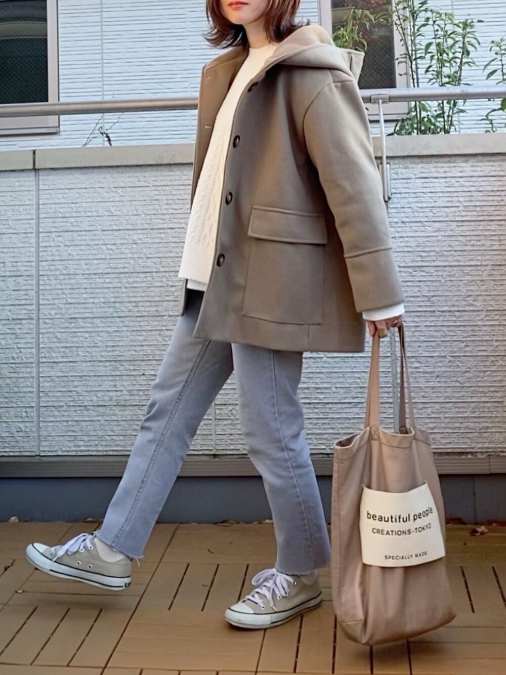 Kay-teeeのピーコート「2wayデザインショートコート」を使ったコーディネート