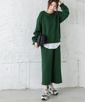 La-gemmeのダンボールニットセットアップ✨ 弾力があって着心地最高🙌 お家で着るのもめちゃオススメだけどお出掛けにもバッチリ使える◎ 何よりこの深いグリーンが大人っぽくてお洒落🥰