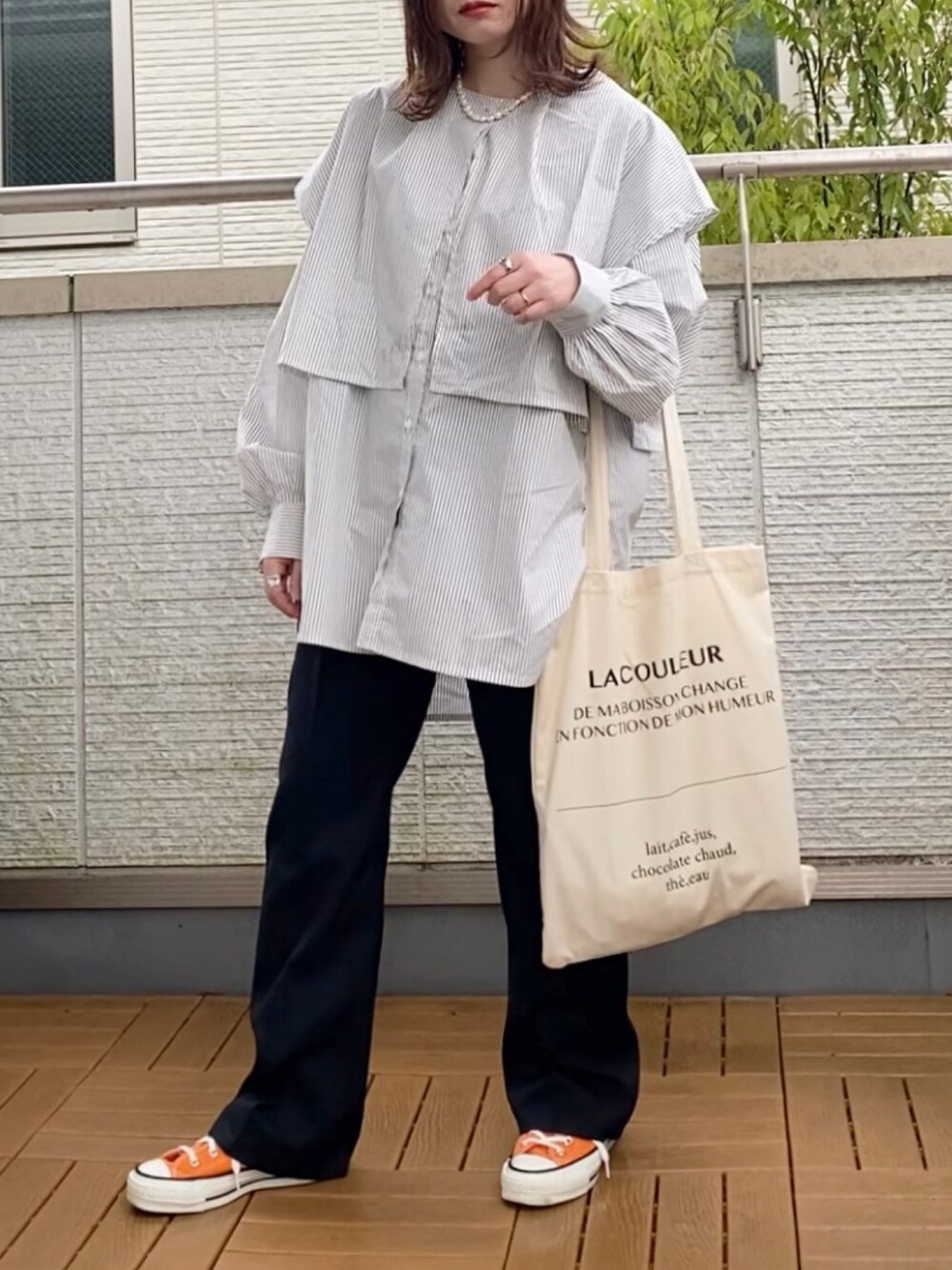 Kay-teeeのシャツ/ブラウス「ビックカラーレイヤードストライプブラウス」を使ったコーディネート