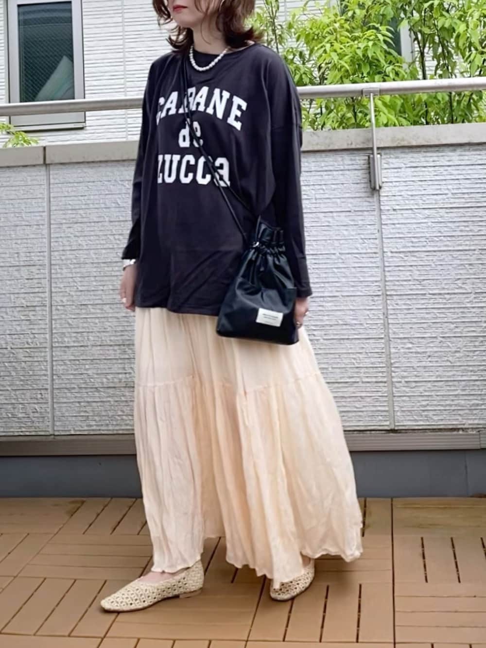 ボーイズライクなロゴTにティアードスカート 合わせで甘辛にしてみた😊