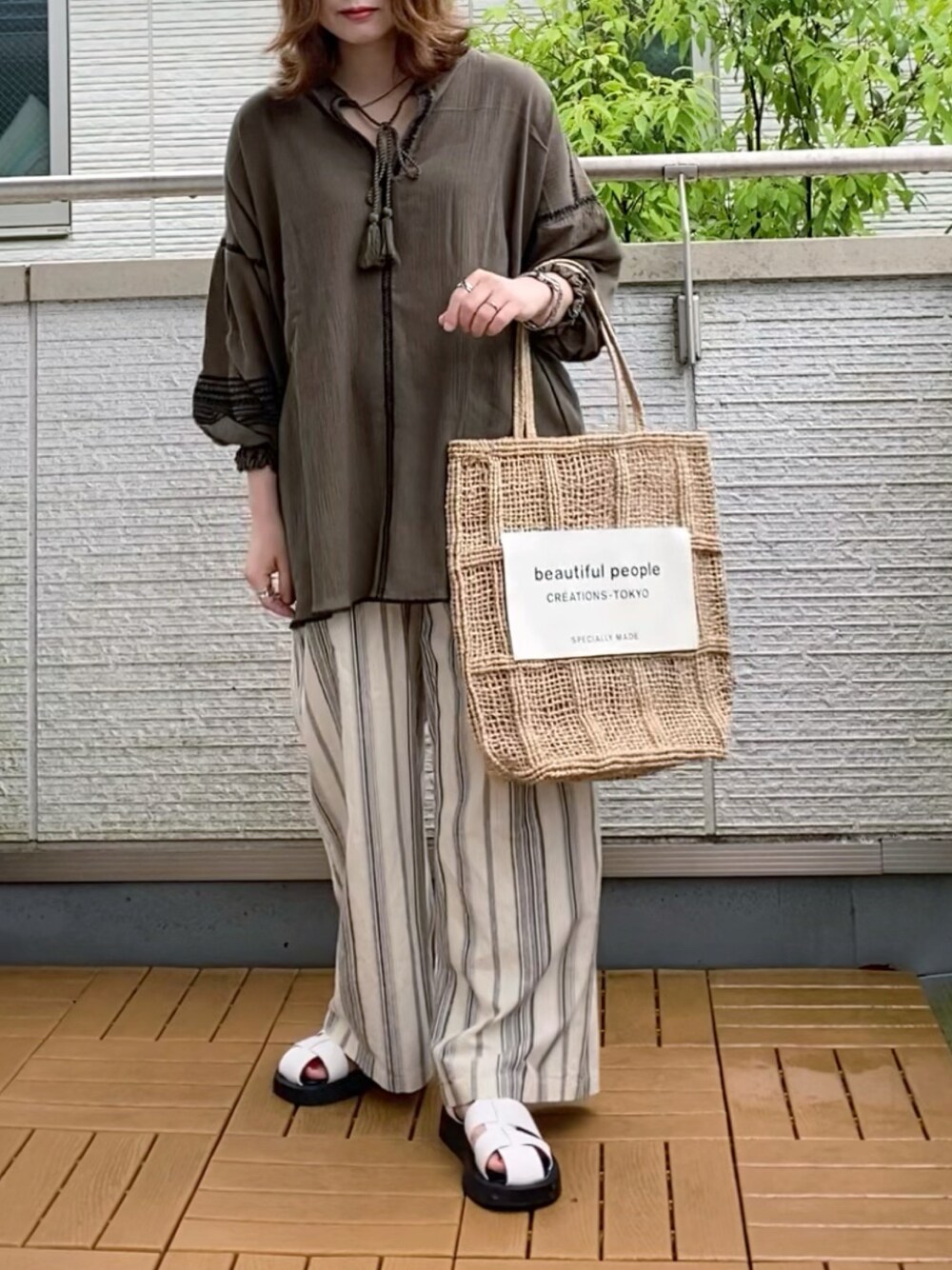 Jolielleの新作で夏コーデ😊 タッセル刺繍ブラウス✨ トレンドのカフタン💚 サラッと涼しい素材で袖丈も長めなので日除けにも◎ シンプルにキリッと効いた刺繍と落ち着いた色味が大人っぽい🥰 晩夏まで長く活躍出来るヨ👍 綿麻マルチストライプパンツ✨ 夏に涼しく着れて楽ちんな麻混のパンツ◎ ストライプの入り方が程よくてスッキリ見えるから着回し易い👍 ただ今楽天スーパーセールでjolielle商品がお得にお買い物できちゃうから是非覗いてみて🛍✨ 6/10深夜1:59マデ!!