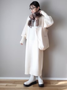 IkkaのRENU メルトンミドル丈フードジャケット✨ キレイめカジュアルど真ん中なコート💚 低身長でもバランスよく着れるミドル丈◎ コクーンシルエットで肩周りにゆとりがあるのでインナーに厚手のニットを着てもモタつかないのも嬉しい😊 tiptopのフェザーVネックBIGカーディガン✨ フェザーヤーンの質感が可愛いくて高見え🙌 ざっくりカジュアルに着れるサイズ感も好み🥰