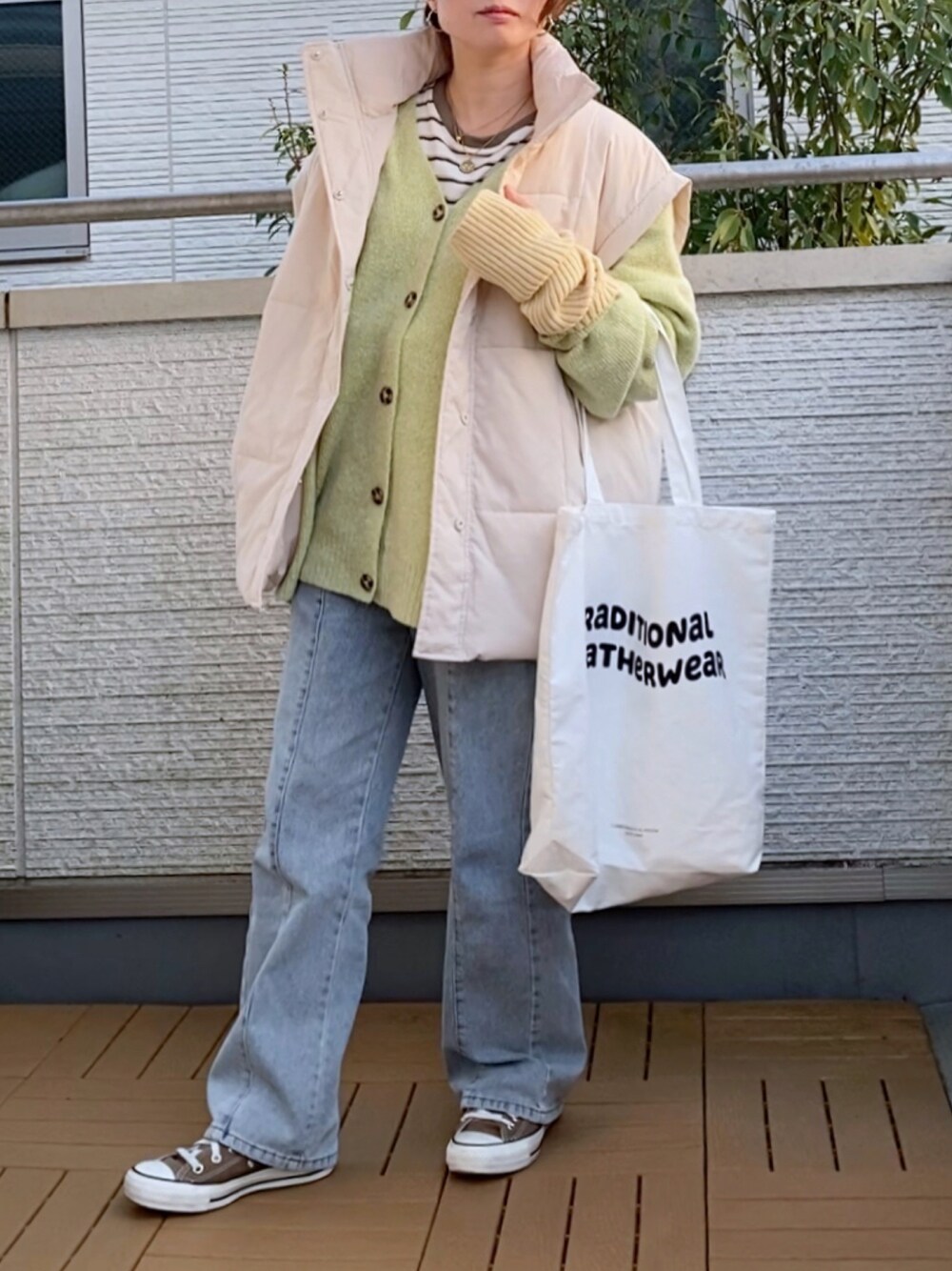 Kay-teeeのカーディガン/ボレロ「オーバーサイズVネックニットカーディガン」を使ったコーディネート