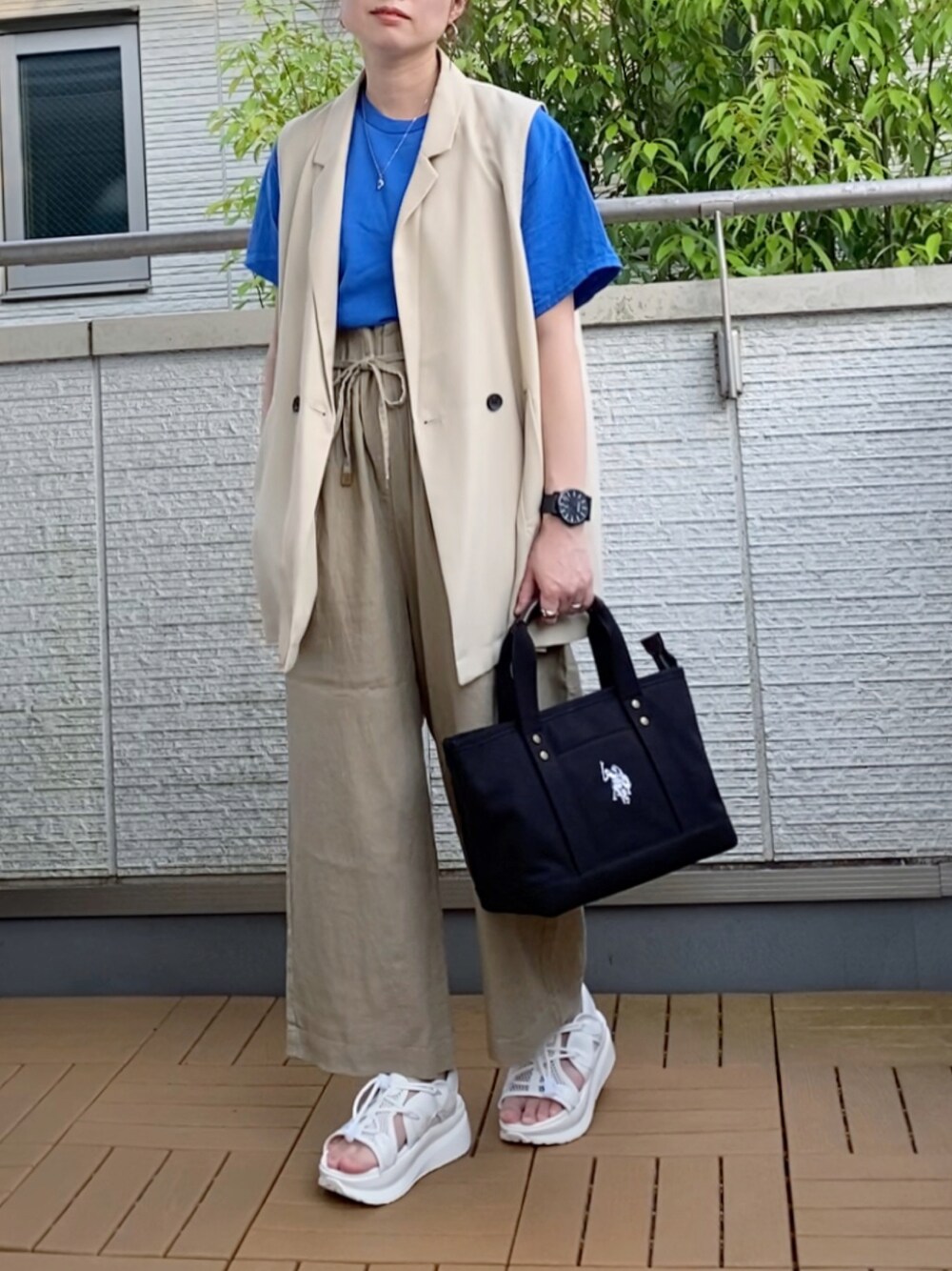 Kay-teeeのベスト「【セットアップ対応】リネンタッチダブルボタンベスト」を使ったコーディネート