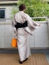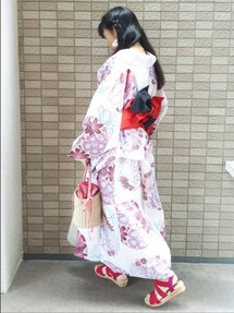 Kay-teeeの浴衣「平帯で浴衣美人に!昭和レトロの夕涼み浴衣3点セット(浴衣・平帯・下駄)」を使ったコーディネート