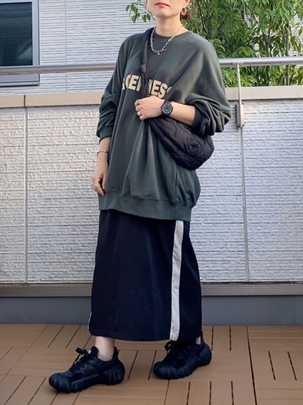 Kay-teeeのスウェット「即オシャレ見え!カレッジ風ロゴスウェット」を使ったコーディネート