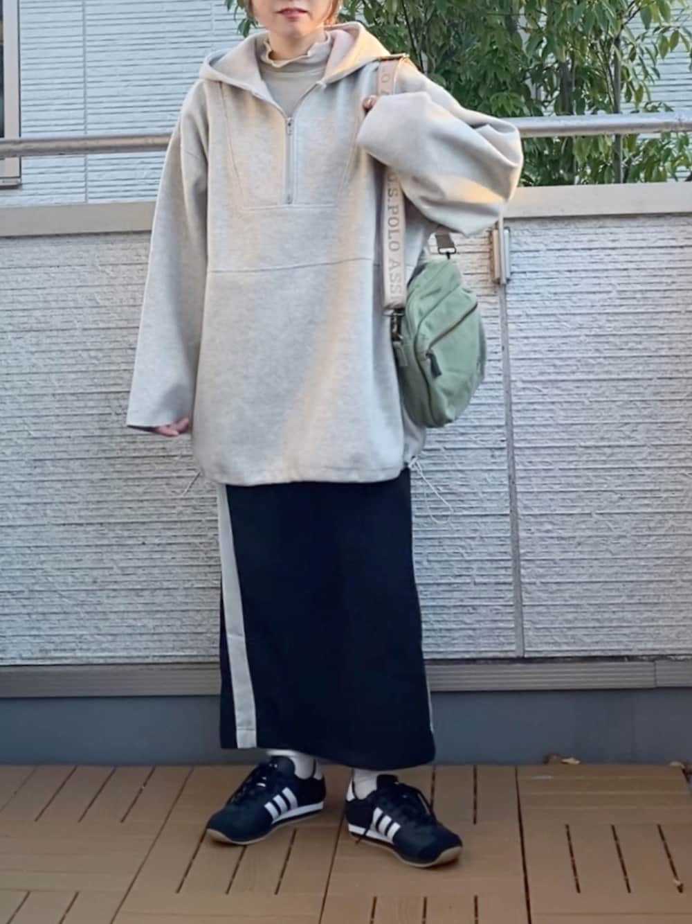 Kay-teeeのパーカー「【ライン入り登場】メルトンハーフジップBIGパーカー」を使ったコーディネート