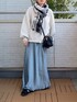 セールでgetしたブルーのサテンスカート😊 キレイめにもカジュアルにも使えそう💚