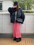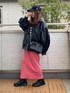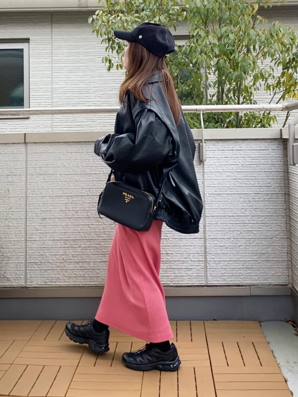 Kay-teeeのライダースジャケット「フェイクレザー2WAYスタンドブルゾン」を使ったコーディネート