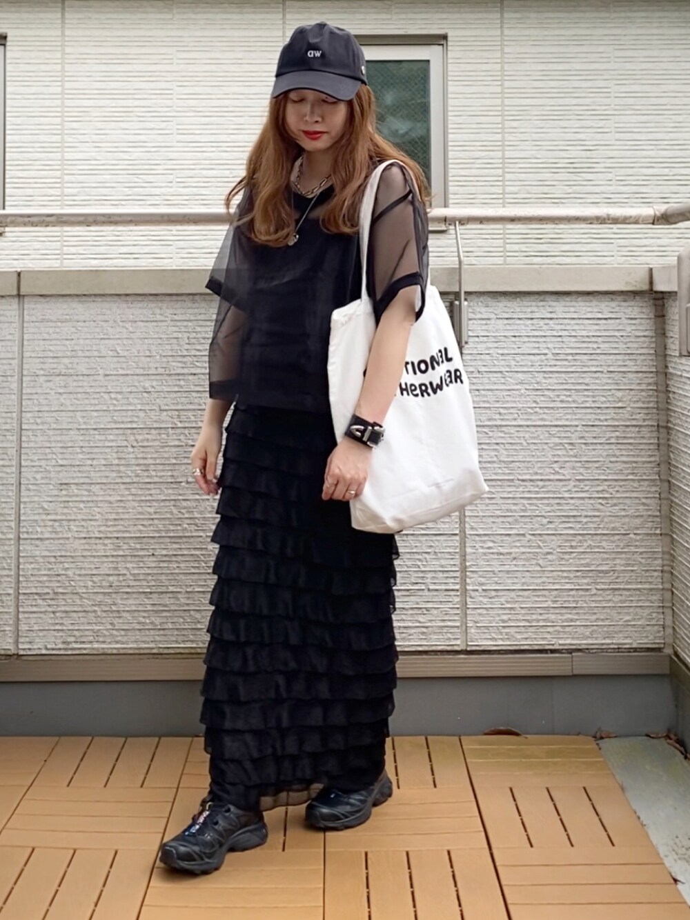 Kay-teeeのTシャツ/カットソー「オーガンジーオーバーサイズシアーブラウスTEE」を使ったコーディネート