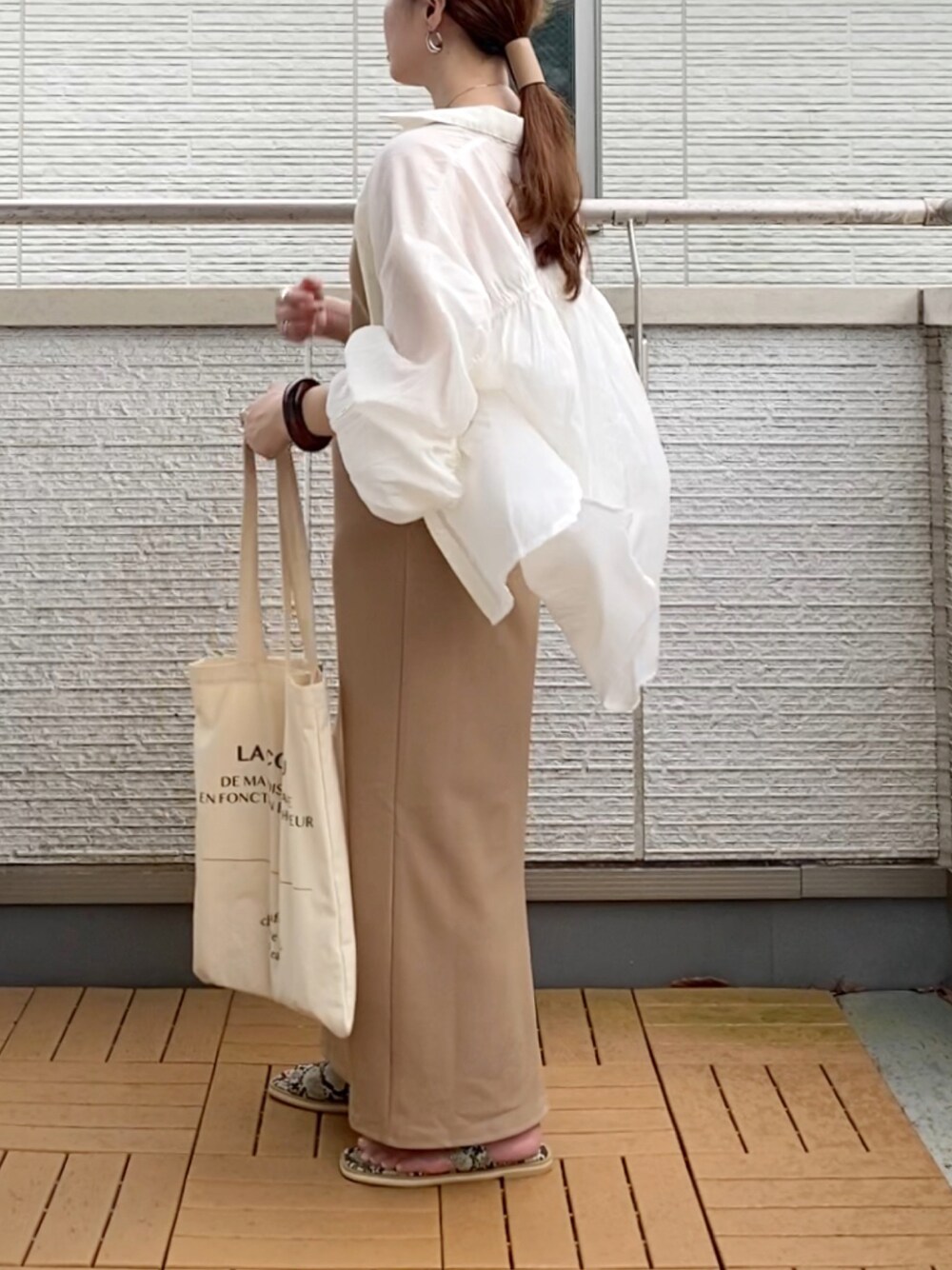 Kay-teeeのシャツ/ブラウス「バックギャザーシアーBIGシャツ」を使ったコーディネート