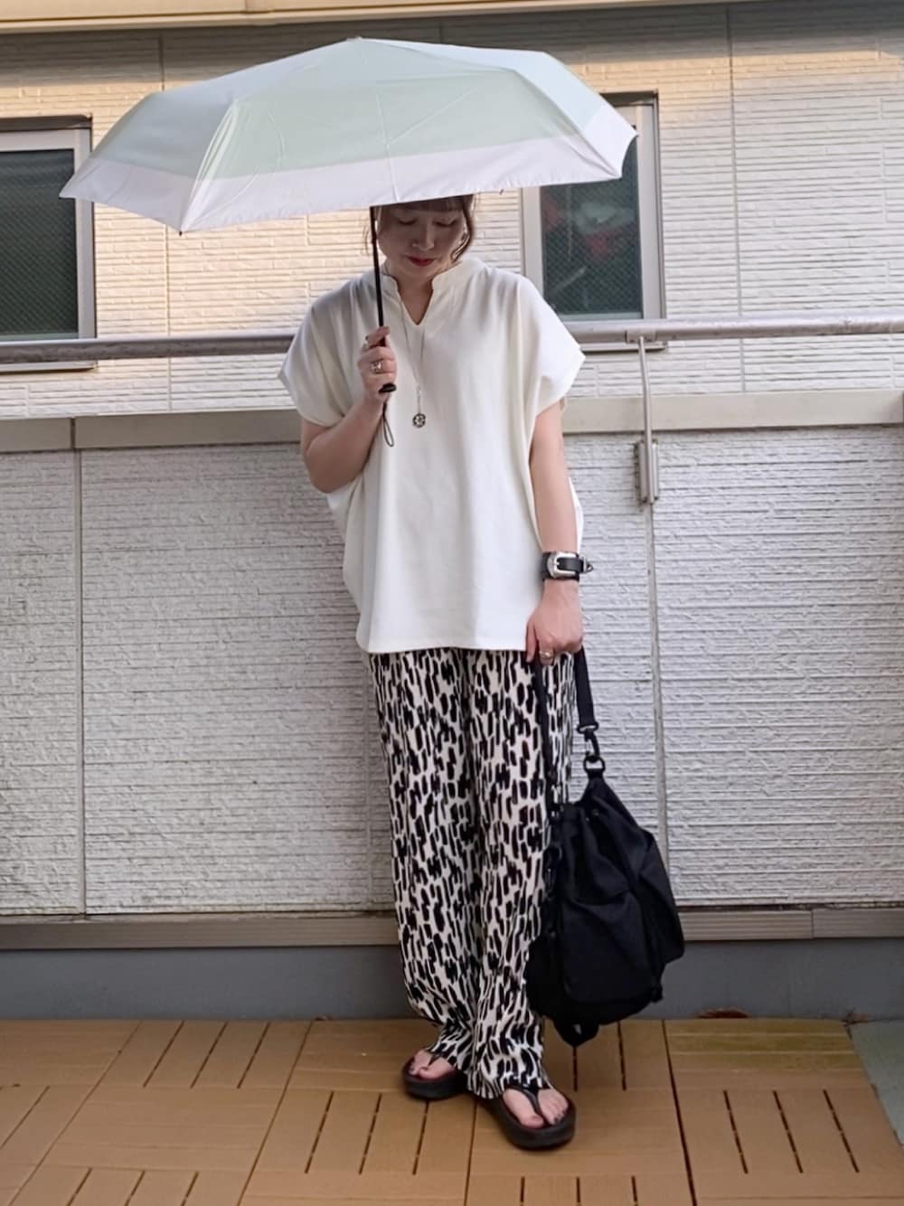 Kay-teeeの折りたたみ傘「NEW極軽カーボン UVブロック 折 55cm バイカラー 日傘 雨傘 兼用」を使ったコーディネート