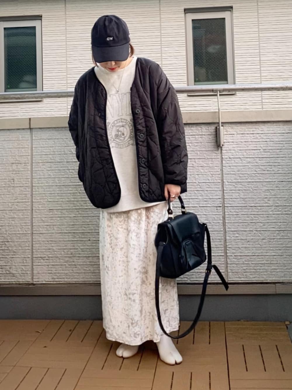 Kay-teeeのノーカラージャケット「ウェーブキルトノーカラージャケット」を使ったコーディネート