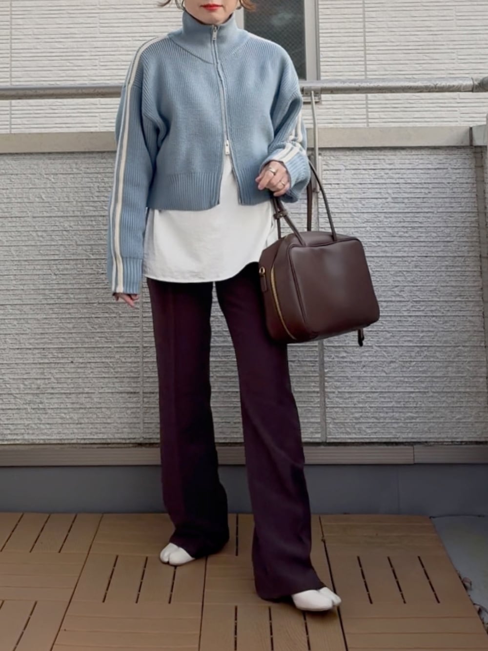 tiptopの袖ライン畦編みジップブルゾン✨ ハイネックにショート丈のバランスが今っぽい👍 ダブルジップで着こなしにアレンジが効くのも◎ 最近気になってるブルーをセレクトしたよ🩵 これから春に向けて大活躍しそう😇 #PR #tiptop