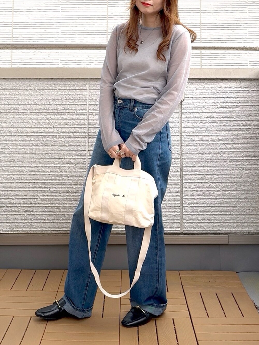 Kay-teeeのニット/セーター「【サイズ展開あり】クルーネックシアーニットプルオーバー」を使ったコーディネート