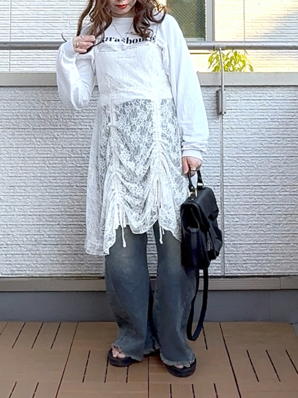Kay-teeeのワンピース「レースドロストミニキャミワンピース」を使ったコーディネート