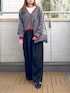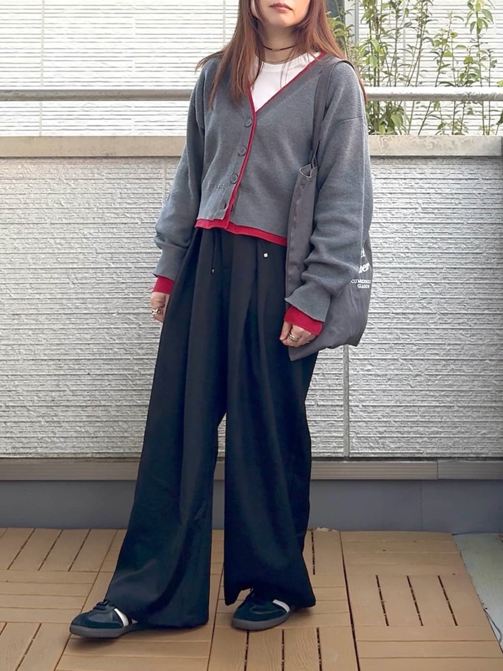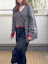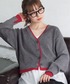 Kay-teeeのカーディガン/ボレロ「畦編配色Vネックショートカーディガン」を使ったコーディネート
