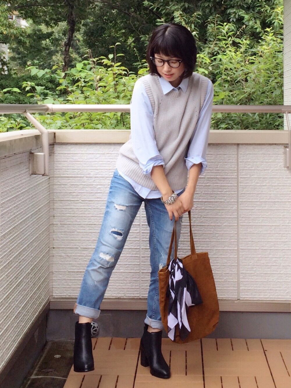 良い子ちゃんコーデ♡ バッグにスカーフ結んでみました😚 息子の幼稚園始まってホッとしたけど、新学期って意外とバタバタ🙈🏃💨 これしばらく続きそうです💦 皆さん素敵な1日を(∩´∀`)∩✨