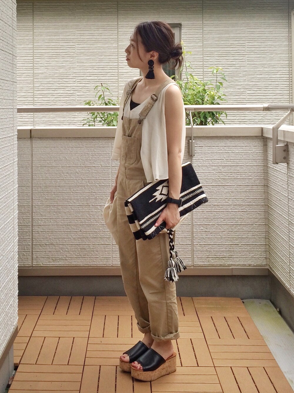 先週末の夜の女子会こーで。 シフォン素材のノースリブラウスはプチプラなのにいい仕事する♡ こうやってサロペのインナーにするのがお気に入りの着方です👍 ノースリだとお店で冷えてきたりするのでカーデ肩に掛けて行きましたが、必要なしでした😅 でもお守り代わりにあると安心✨✨