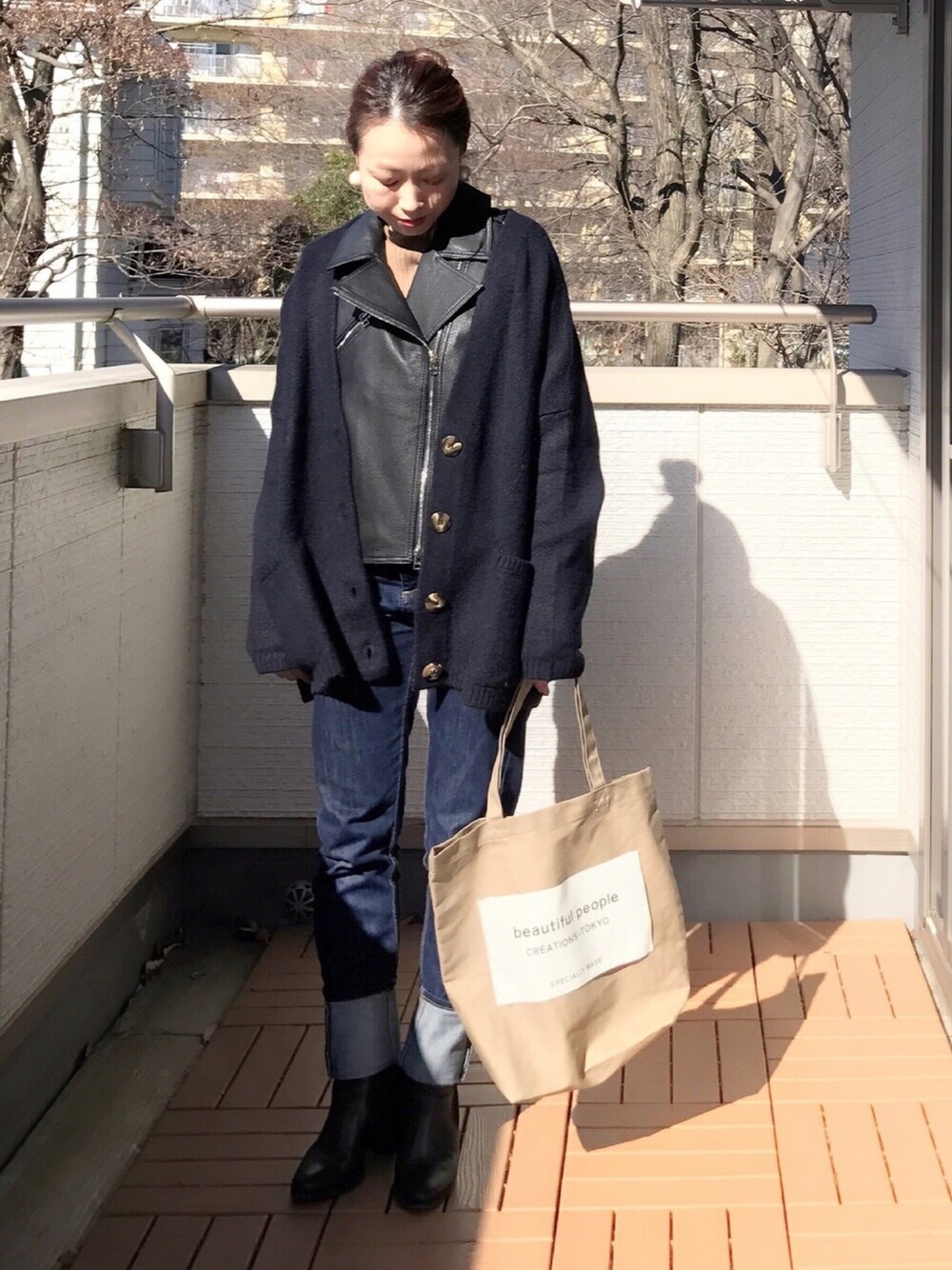 ZARAのsaleでゲットしたオーバーサイズのカーデをライダースの上に羽織った このままだとカーデしょっちゅうずり落ちて厄介なのでカーデの裏に付いてるハンガーずり落ち防止の紐(ファストファッションの服によく付いてるあれ)をライダースのエポーレットに通して止めてみたらずり落ちそうでずり落ち落ちないいい感じにキープできてちょっと嬉しい☺❤