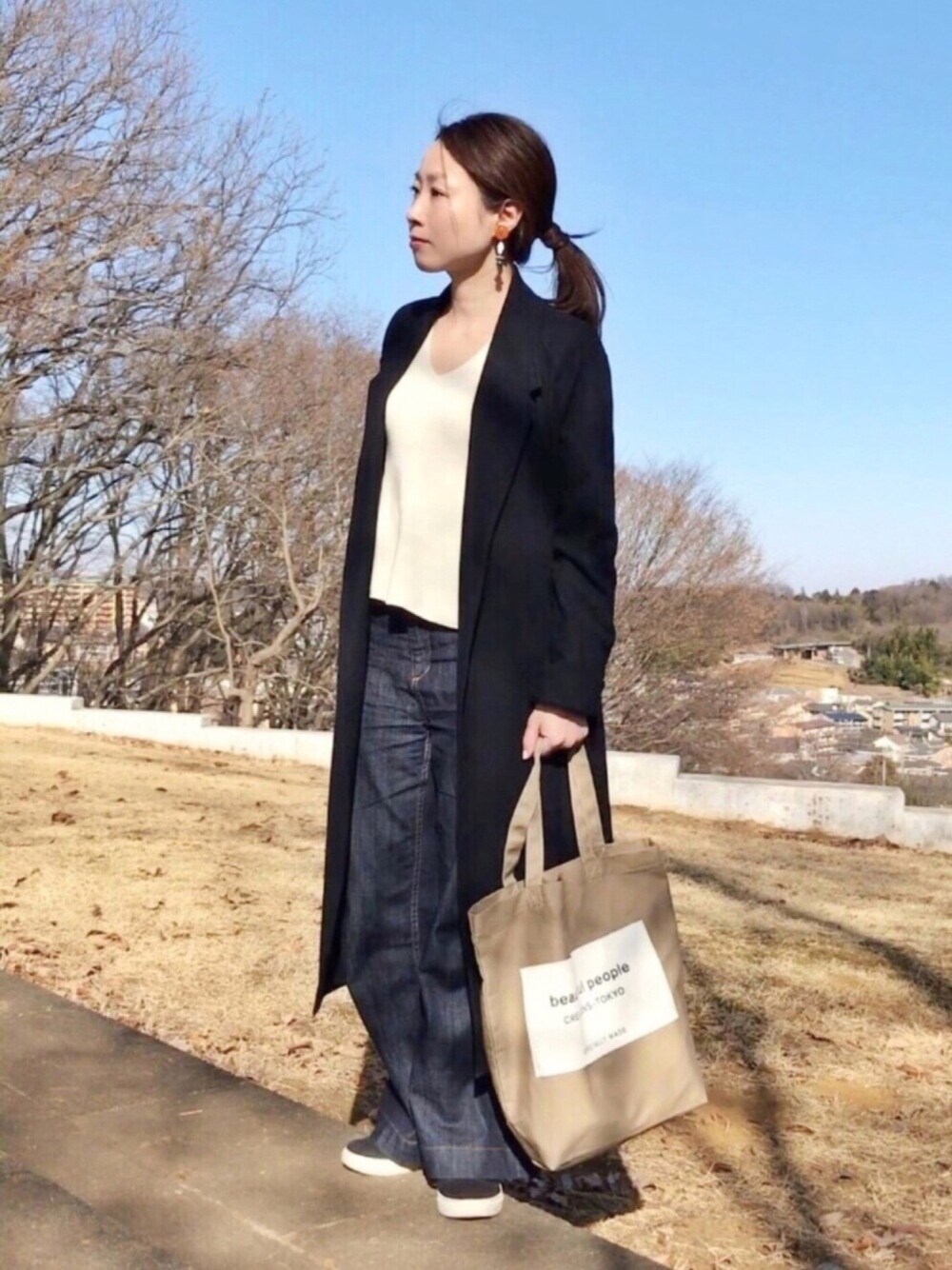 シンプル楽ちんコーデでお散歩🚶🏻♀️ 目新しくはないですが、お気に入りのシンプルアイテムたち♡ インに着たニットは裾はフレアでウエストから上がピタッとなっていてワイドパンツ合わせでゆるピタなシルエットにしてみました☺