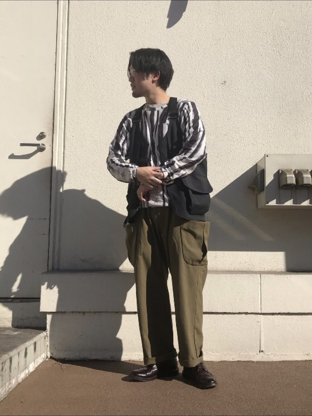 こんにちは、春を省いていきなり夏が来たような天気でしたね。 日々軽装になり薄めのレイヤリングが楽しめます。 タック、テーパードパンツバランスを意識して組み立てました