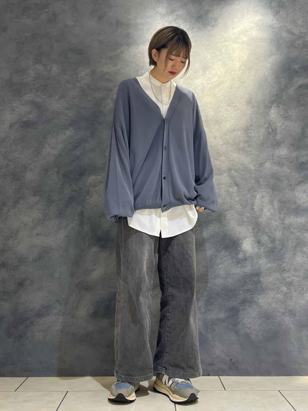 シアーのカーディガンを使ったカジュアルスタイル。 シャツとシンプルに合わせるのがおすすめです!
