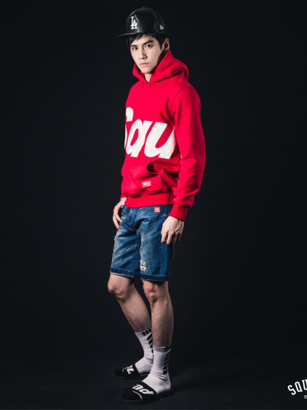 上衣:SQUAD 2014 A/W Letters ring Pullover Hoodie 帽款:NEW ERA LA Leather 褲款:SQUAD 2014 SB Rule Over the Street Denim Shorts 鞋款:SQUAD Flip flops