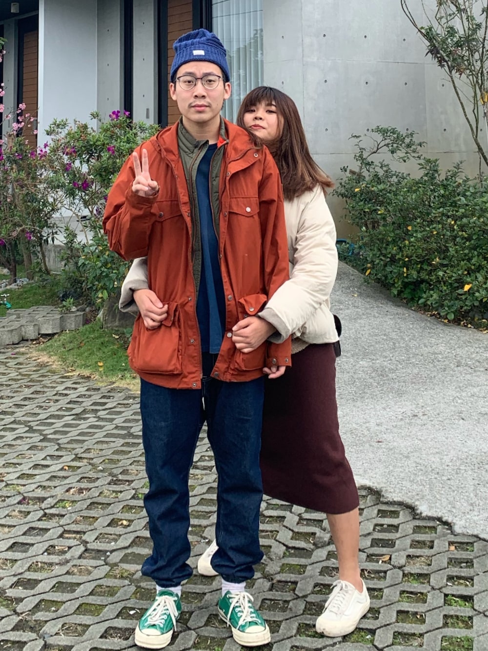 グリーン系のスニーカーを着用したメンズの夏コーディネートの1枚目の写真