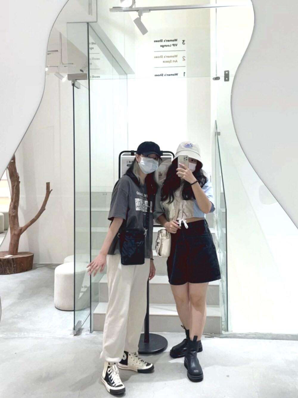 我們有搭配到吧~? 正好相反 帽子 衣服 褲子 包包 鞋子