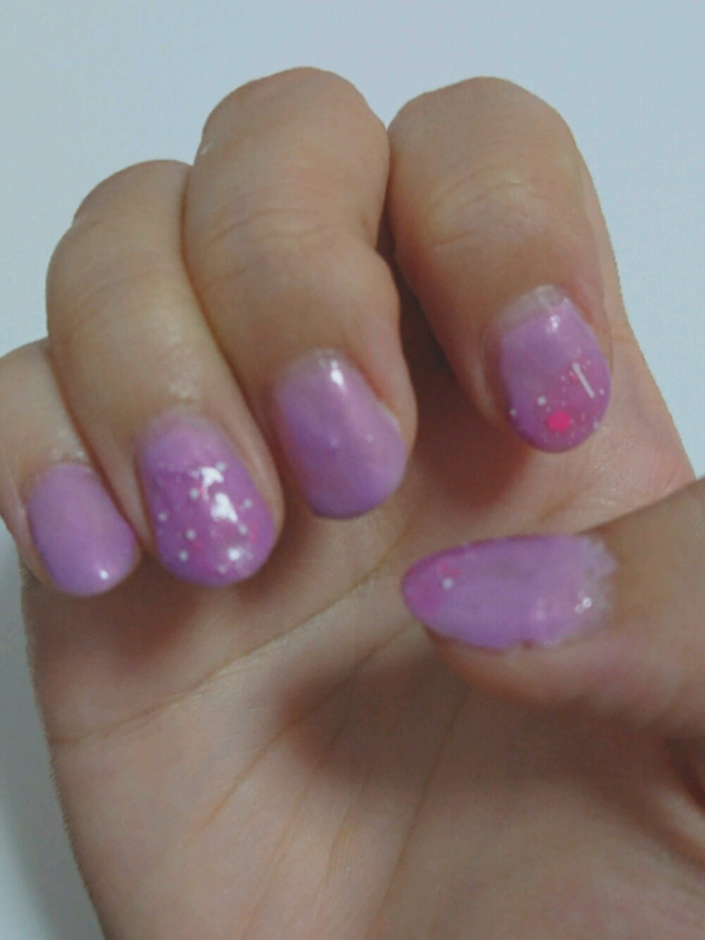 昨日ゆってたネイル ベースはパープルピンクのジェルネイル💅 そこにピンク×ホワイトのキラキラ✨ 部分的にいれました😳