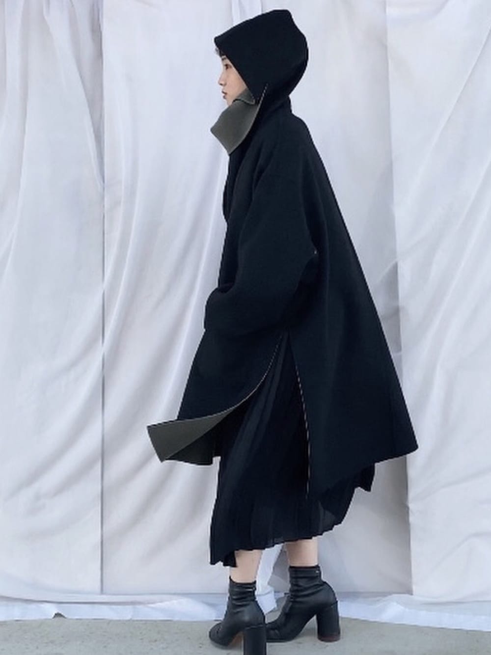 被って着るタイプの ポンチョコートはカーキとブラックの リバーシブル◎ 首元はマフラーにもなるし 外して揺れ感を出すことも出来る 万能アイテム◎ 大きめのスリットが入っていて 厚めのニット着てもごわつかず 防寒もできてレイヤードも楽しめる◎ フードは大きめ◎ 式前日に綺麗めなスカートを持っていないことに気づいてUNIQLO行きました。 3000円に見えますか👀👀👀👀 最強UNIQLOチャチャチャ
