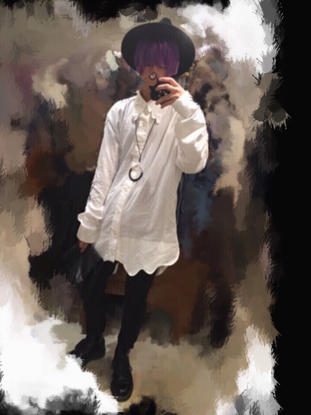 新作のHEIHEIの溶けてるシャツ 襟元かわいい とりあえずそのまま着てみただけ