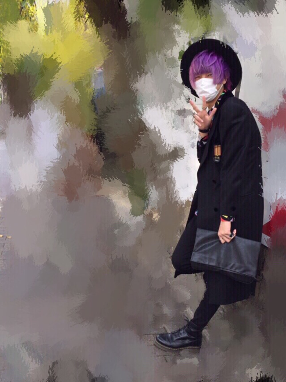 今季もロングコート 髪の毛紫やからモノトーンか原色しか似合わんつらい そんな服写ってないけどいい感じやから雰囲気だけ